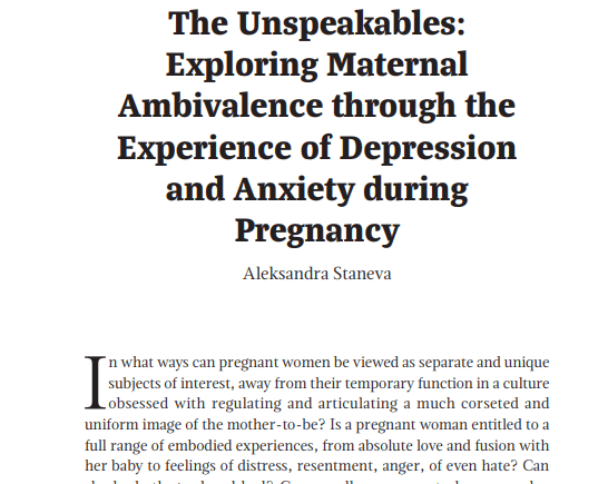 - Staneva, A. (in press) Good mothers: Bad mothers. Exploring maternal ambivalence during pregnancy (in preparation) book chapter in Maternal Ambivalence Cassidy, T. Demeter Press, York: Canada